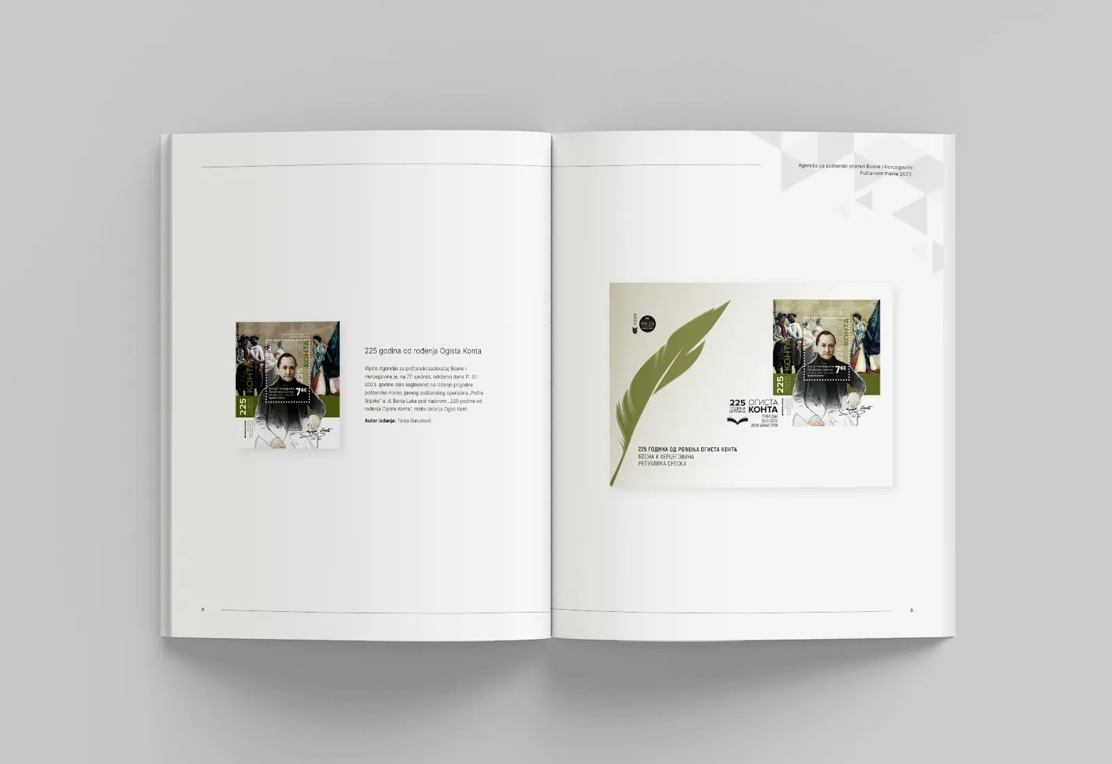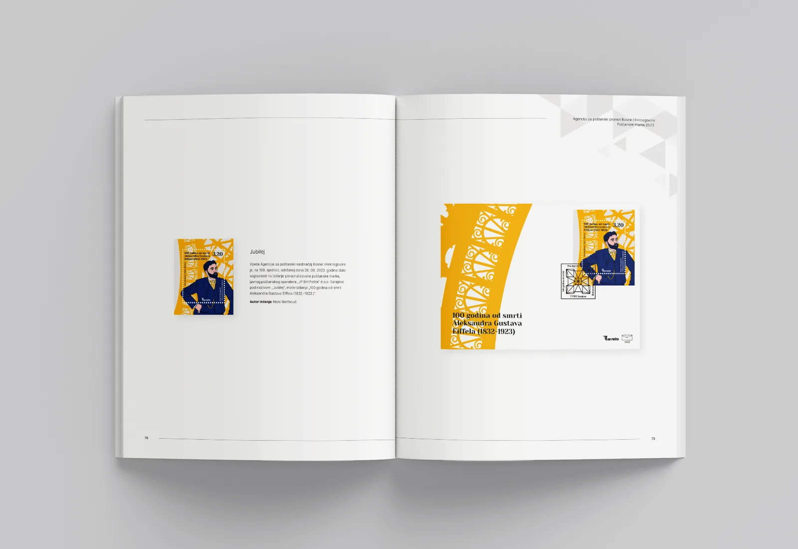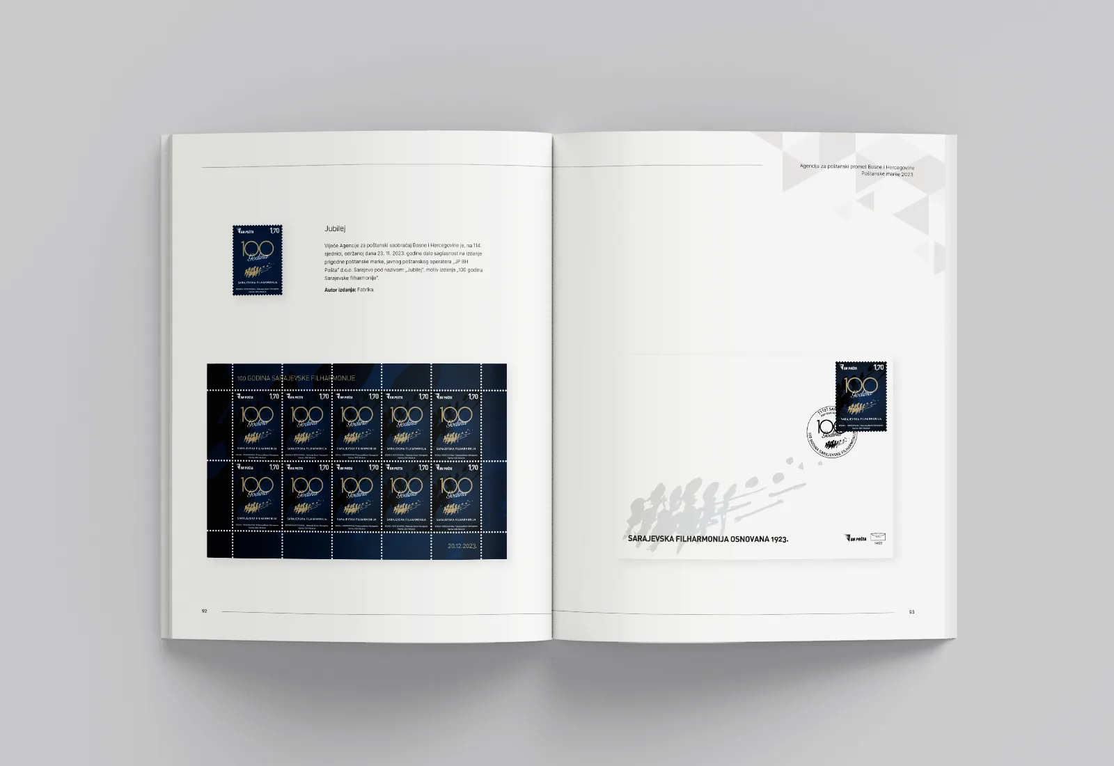 The project encompassed the design and visual layout of a trilingual publication (Bosnian, Croatian, and Serbian), with particular emphasis on clarity of classification and the aesthetic presentation of regular, commemorative, and personalized stamp issues. It includes graphic representations of stamp sheets, FDC envelopes, and commemorative postmarks, as well as a structured overview of approvals issued by the Postal Traffic Agency of Bosnia and Herzegovina, all aligned with the visual identity of the publication.